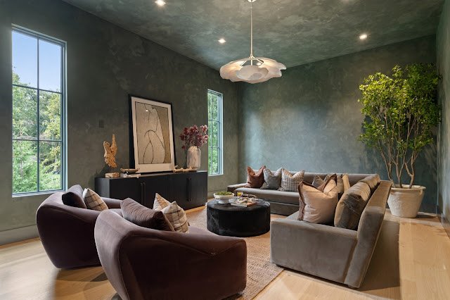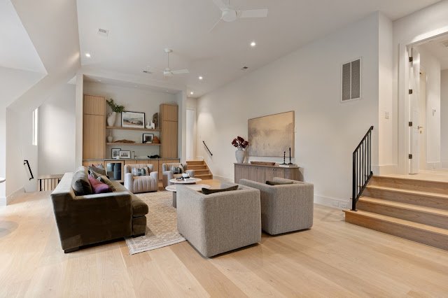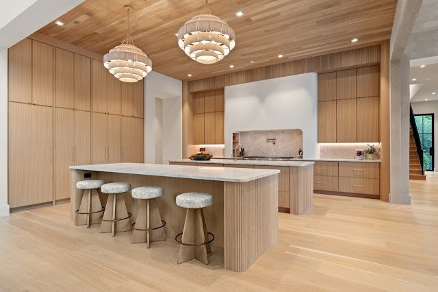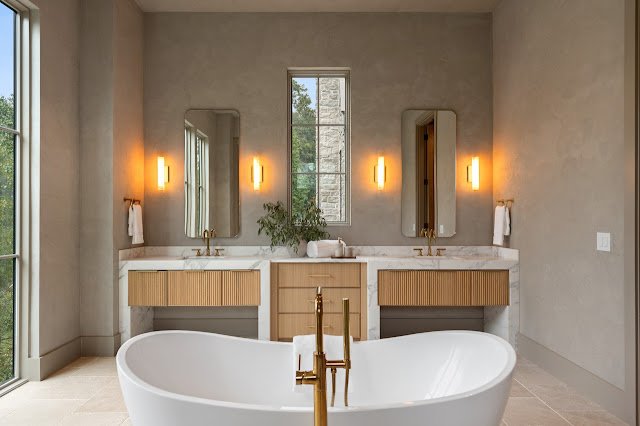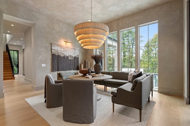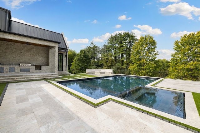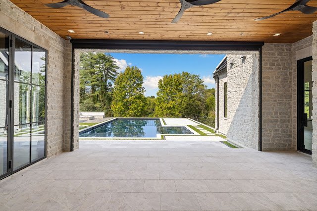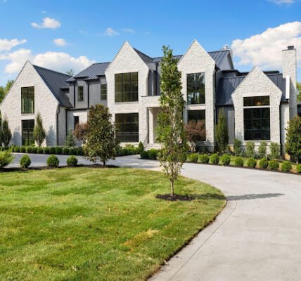 Situated on nearly 1.7 acres of land in Nashville, TN, this newly built Transitional-style mansion boasts a stately exterior that showcases striking platinum stone and vertical clapboard siding; timeless elegance meets cutting-edge sophistication. The pristine home’s interior is a bold display of impeccable craftsmanship and curated finishes throughout. From Calcutta marble and Taj Mahal quartzite to white oak ceilings and smooth Venetian plaster walls, the interior is a seamless blend of modern design and organic richness.