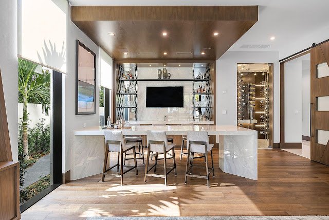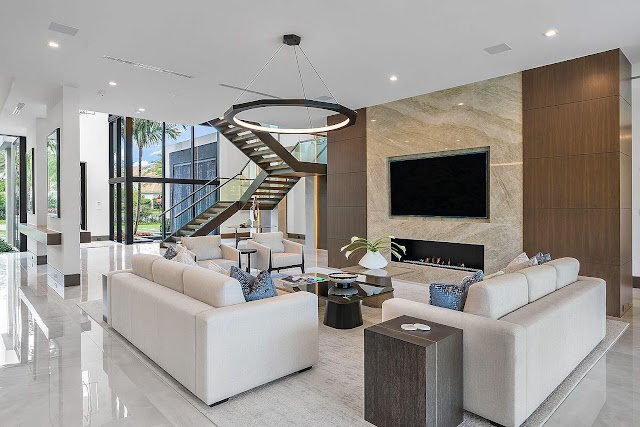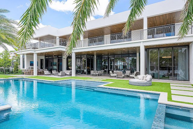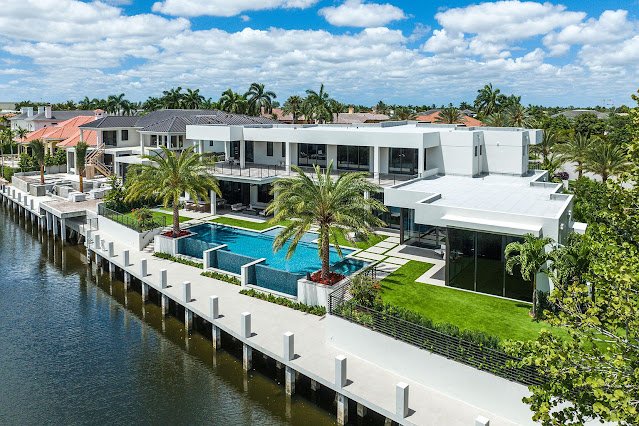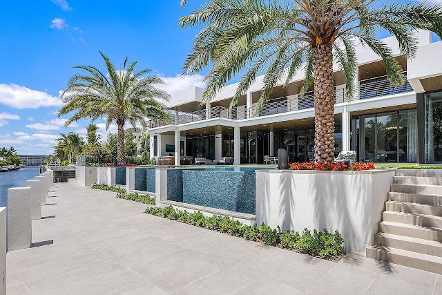 Located in the prestigious Royal Palm Yacht & Country Club, this contemporary new build in Boca Raton, FL is sited on a premier corner lot that is just over a half an acre and boasts 166′ of Butterfly Palm waterfrontage. Exceptional craftsmanship, gleaming finishes, and expanses of floor-to-ceiling windows and sliding glass walls are but a few of the outstanding hallmarks of this pristine residence.