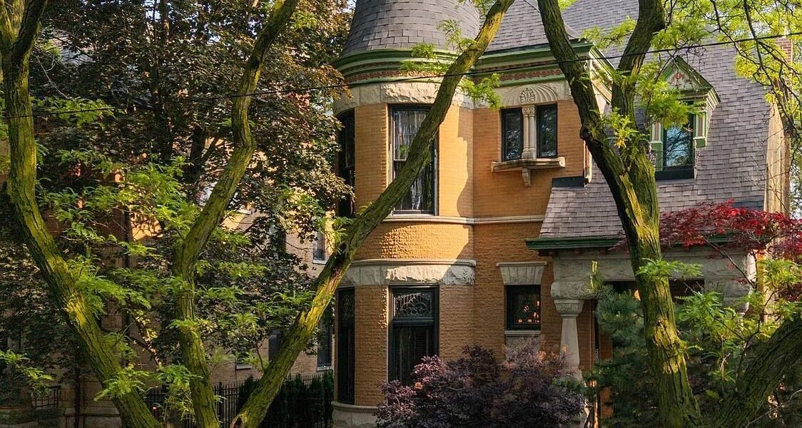 Discover the timeless allure and beauty of Caton Street, a landmarked block with magnificent historical mansions nestled in Chicago’s vibrant Bucktown & Wicker Park area. This Romanesque Revival home, crafted in 1891, was designed by the same architects as Thalia Hall in Pilsen! 2138 W. Caton offers an exquisite blend of historical charm and modern luxury. The residence boasts up to four bedrooms and four and a half elegantly updated bathrooms on a double lot! Marvel at the hand-carved oak staircase and leaded glass windows, coupled with the warmth of three original and stunning fireplaces! Hand carved medallions & millwork, cove moldings paired with period lighting and original door hardware complete the majestic details of this masterpiece! The modern kitchen is cozy with a stunning fireplace which creates a beautifully unique eat-in kitchen experience, while the grand living spaces invite warm and large gatherings. The library has grey cork wallpaper with gold filaments capped with brass painted crown molding and another stunning fireplace!