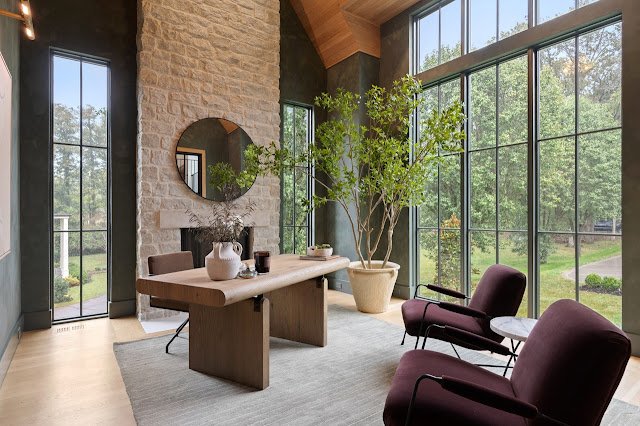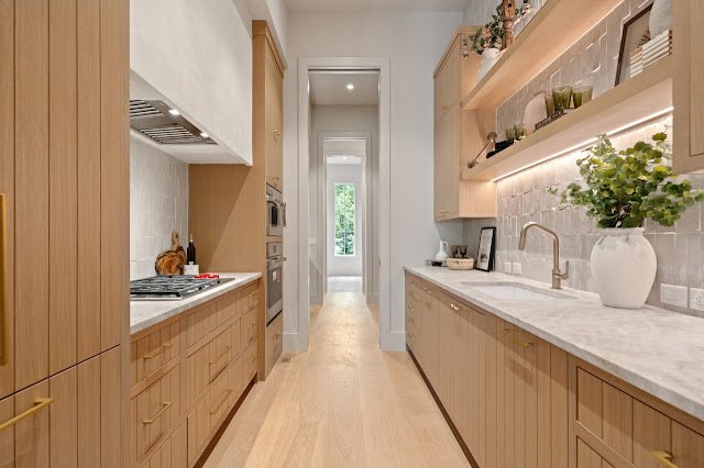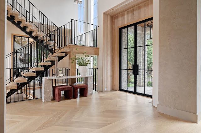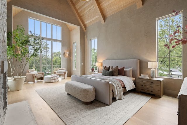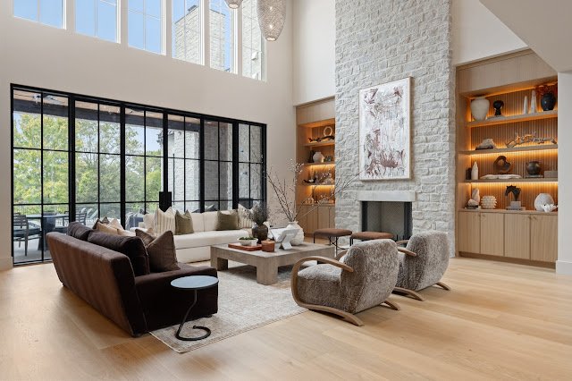 Situated on nearly 1.7 acres of land in Nashville, TN, this newly built Transitional-style mansion boasts a stately exterior that showcases striking platinum stone and vertical clapboard siding; timeless elegance meets cutting-edge sophistication. The pristine home’s interior is a bold display of impeccable craftsmanship and curated finishes throughout. From Calcutta marble and Taj Mahal quartzite to white oak ceilings and smooth Venetian plaster walls, the interior is a seamless blend of modern design and organic richness.