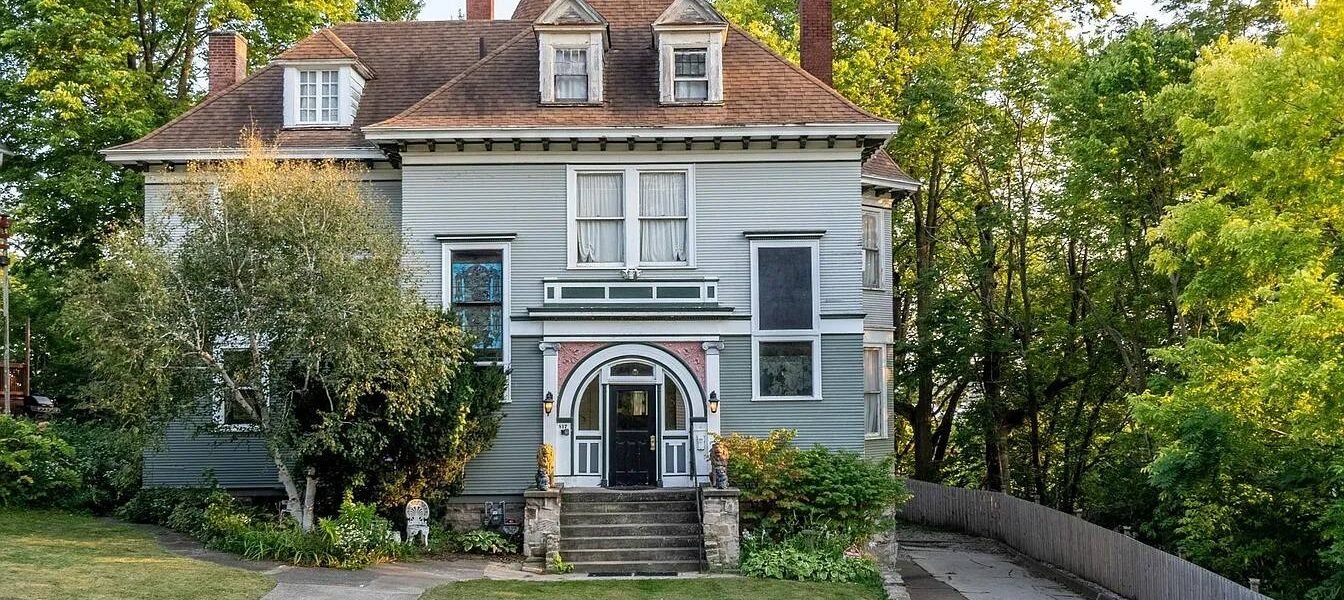 This 1895 Queen Anne residence, is a historic gem from the Gold Coast era. This fully restored mansion evokes warmth & elegance. Inside, the home blends historical charm with modern comforts. The kitchen features a fireplace, granite island, & a cozy breakfast nook illuminated by beveled glass windows. The grand dining room, seating 14, showcases a mural of the Mississippi River & steamboats. Original tin ceilings, 5 fireplaces with electric log heaters, & a walk-through butler’s pantry add to its timeless appeal. The circular outdoor porch, offering shaded river views, is perfect for relaxation. The ladies’ parlor, with soft blue tones & a Murano glass chandelier, is a favorite gathering spot. Each of the 8 bedrooms, all with access to a bathroom, has a distinct theme, adding unique character to this remarkable home!