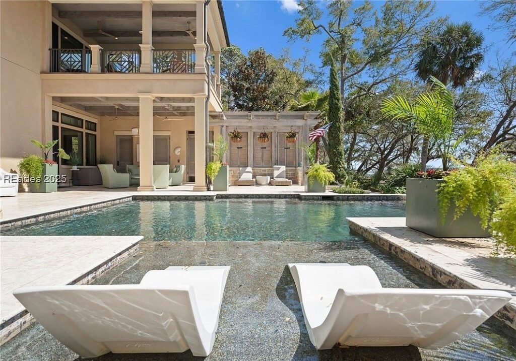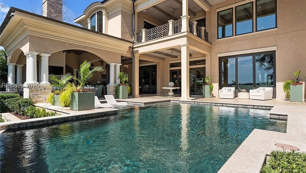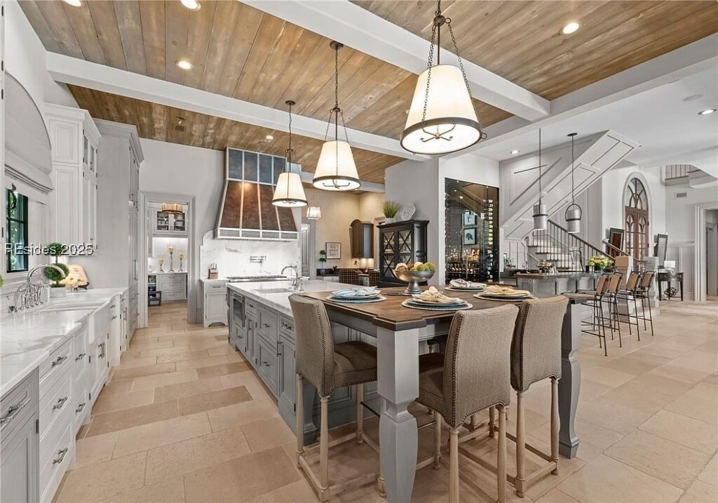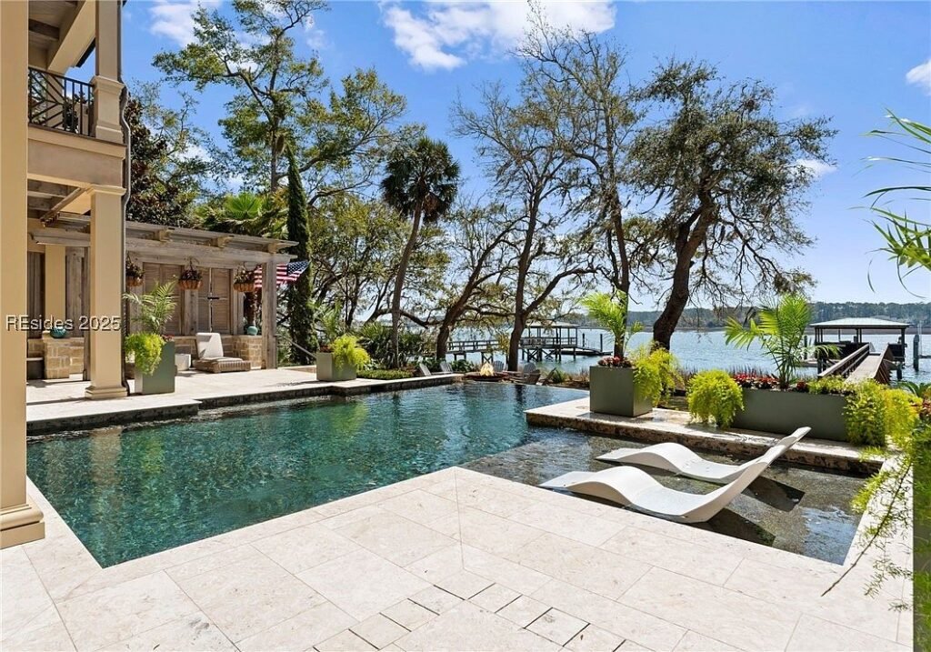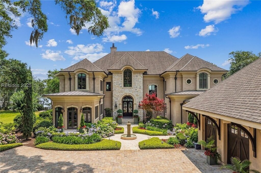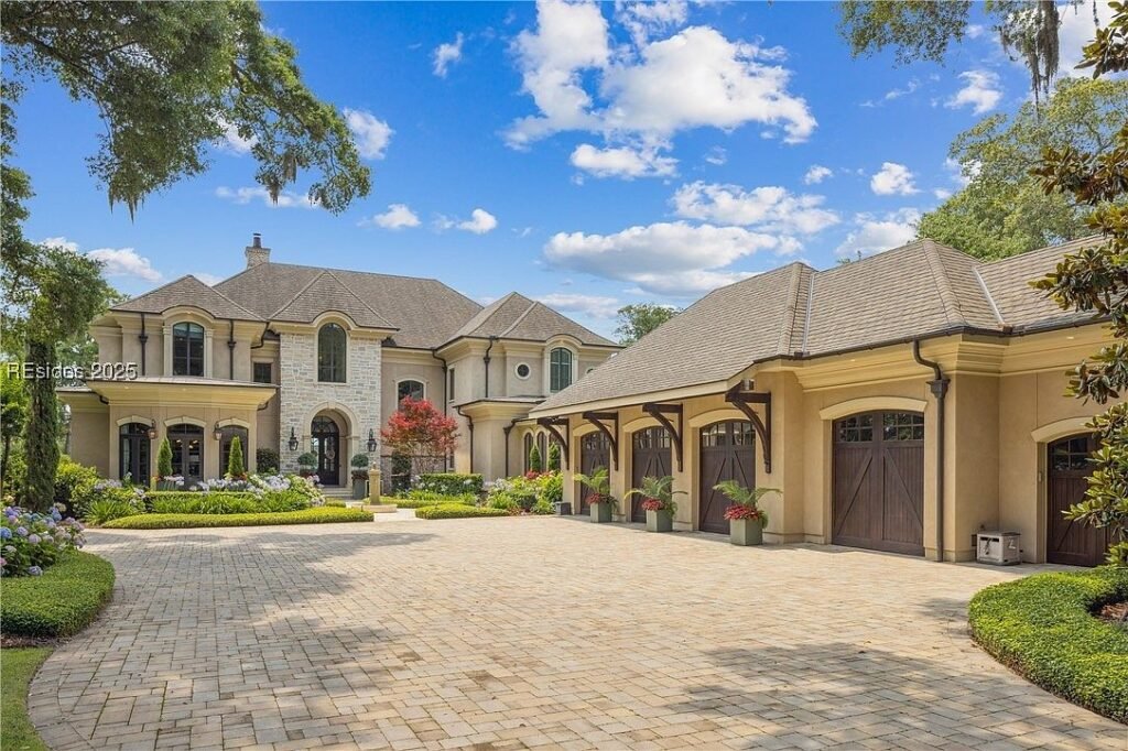 Coined “The Manor on Broad Creek”, this stucco and stone mansion is located in an exclusive gated enclave on Hilton Head Island and some of the area’s most pristine water frontage. Built in 2015, the stately residence is situated on just under two acres of land and boasts a luxurious interior rich with reclaimed wood beams, intricate millwork, modern conveniences, and gleaming finishes throughout.