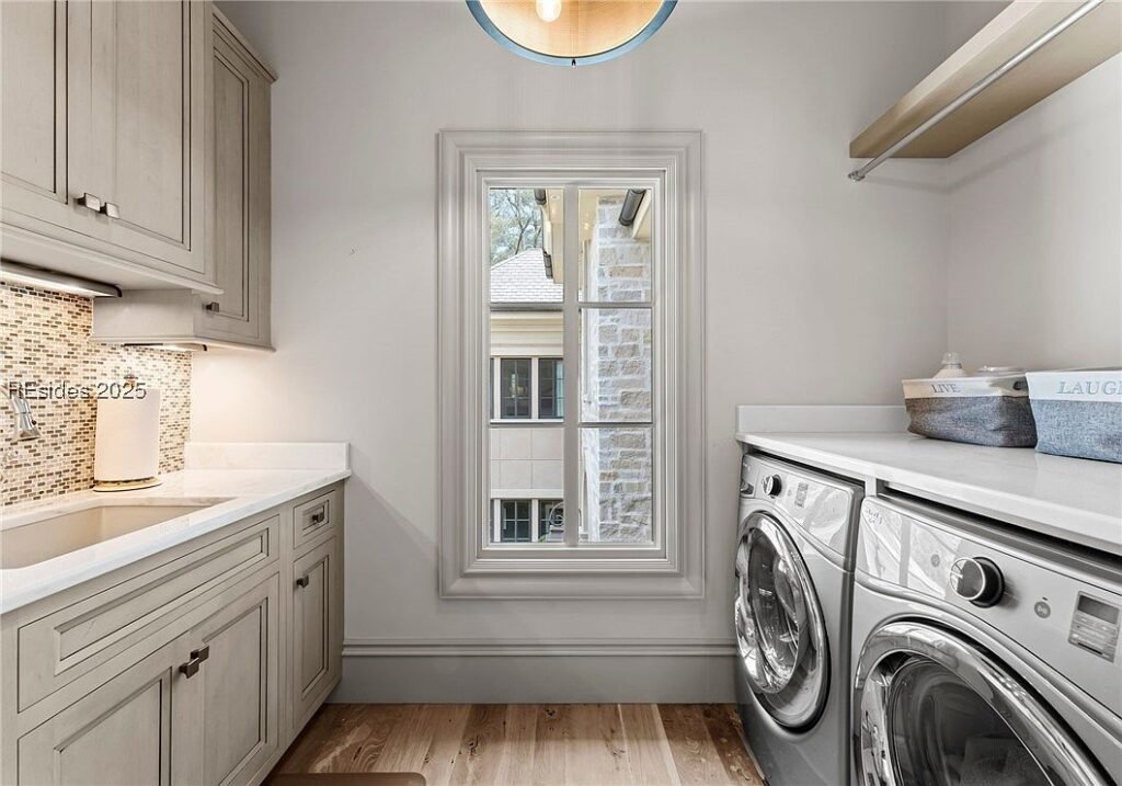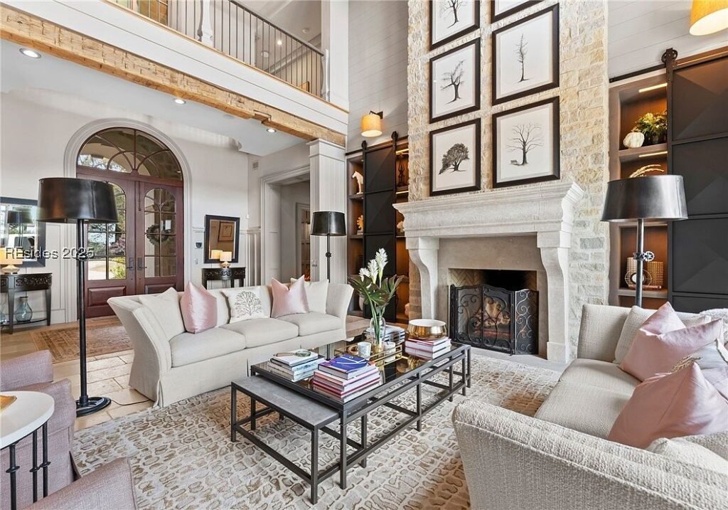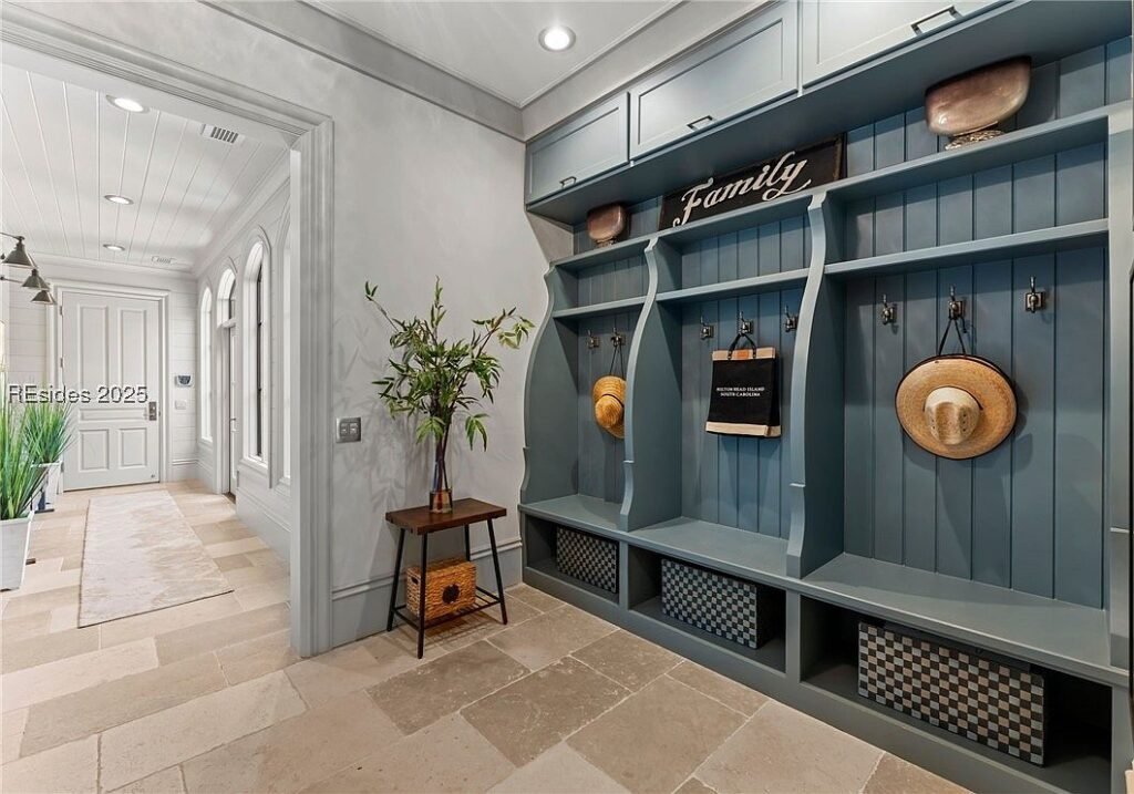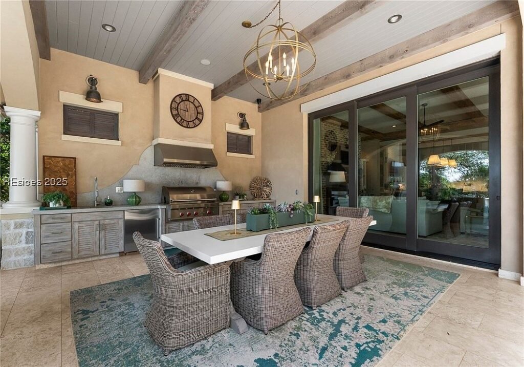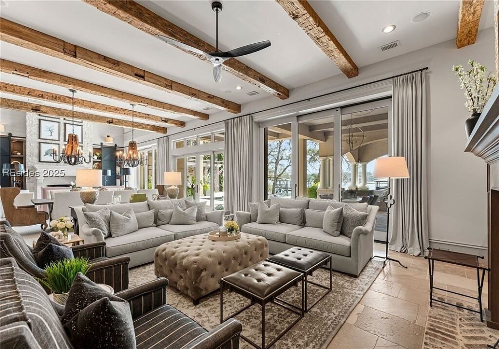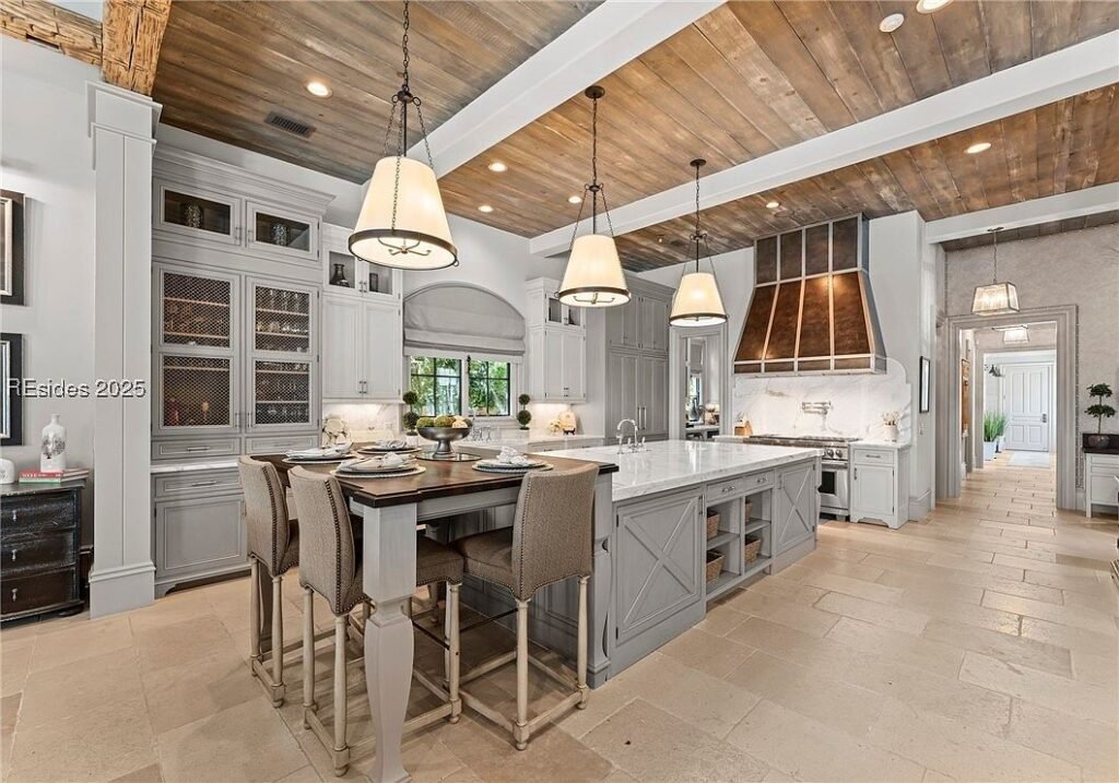 Coined “The Manor on Broad Creek”, this stucco and stone mansion is located in an exclusive gated enclave on Hilton Head Island and some of the area’s most pristine water frontage. Built in 2015, the stately residence is situated on just under two acres of land and boasts a luxurious interior rich with reclaimed wood beams, intricate millwork, modern conveniences, and gleaming finishes throughout.