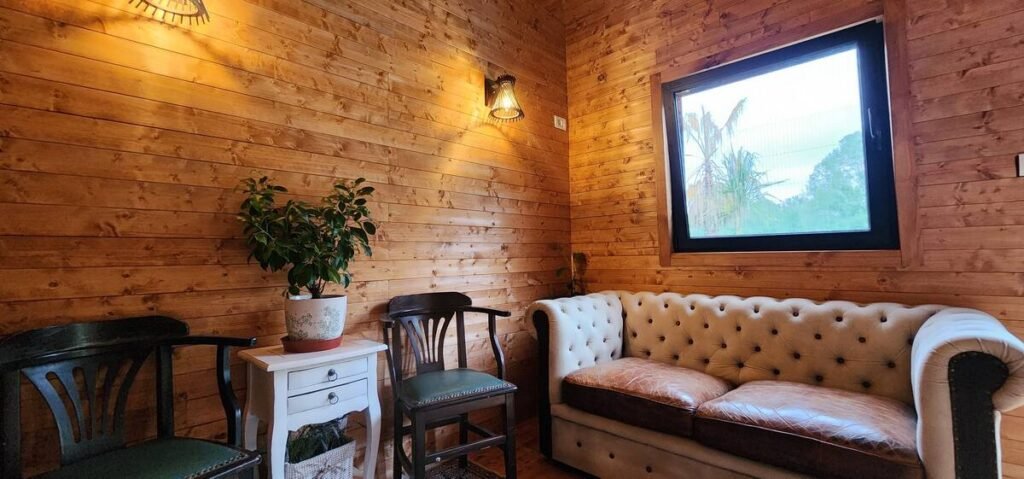 A bright and charming wooden cabin, perfect for two. Surrounded by greenery and kissed by sunshine, it’s a peaceful spot to slow down, breathe deeply, and enjoy the beauty of simple living.